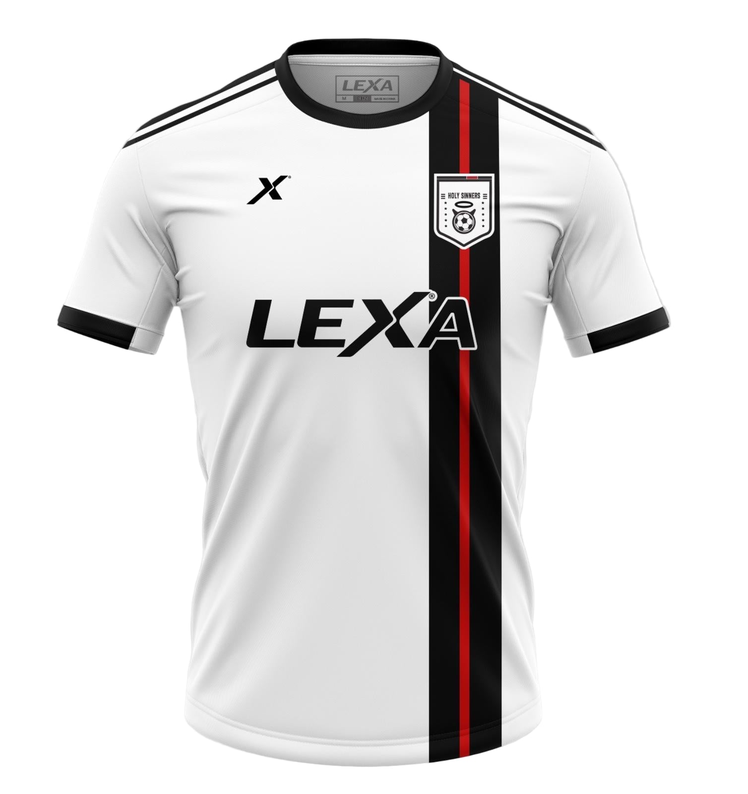 HOLY SINNERS - White Jersey - Short Sleeve is backordered and will ship as soon as it is back in stock.