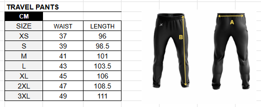 Travel Pants Size Chart