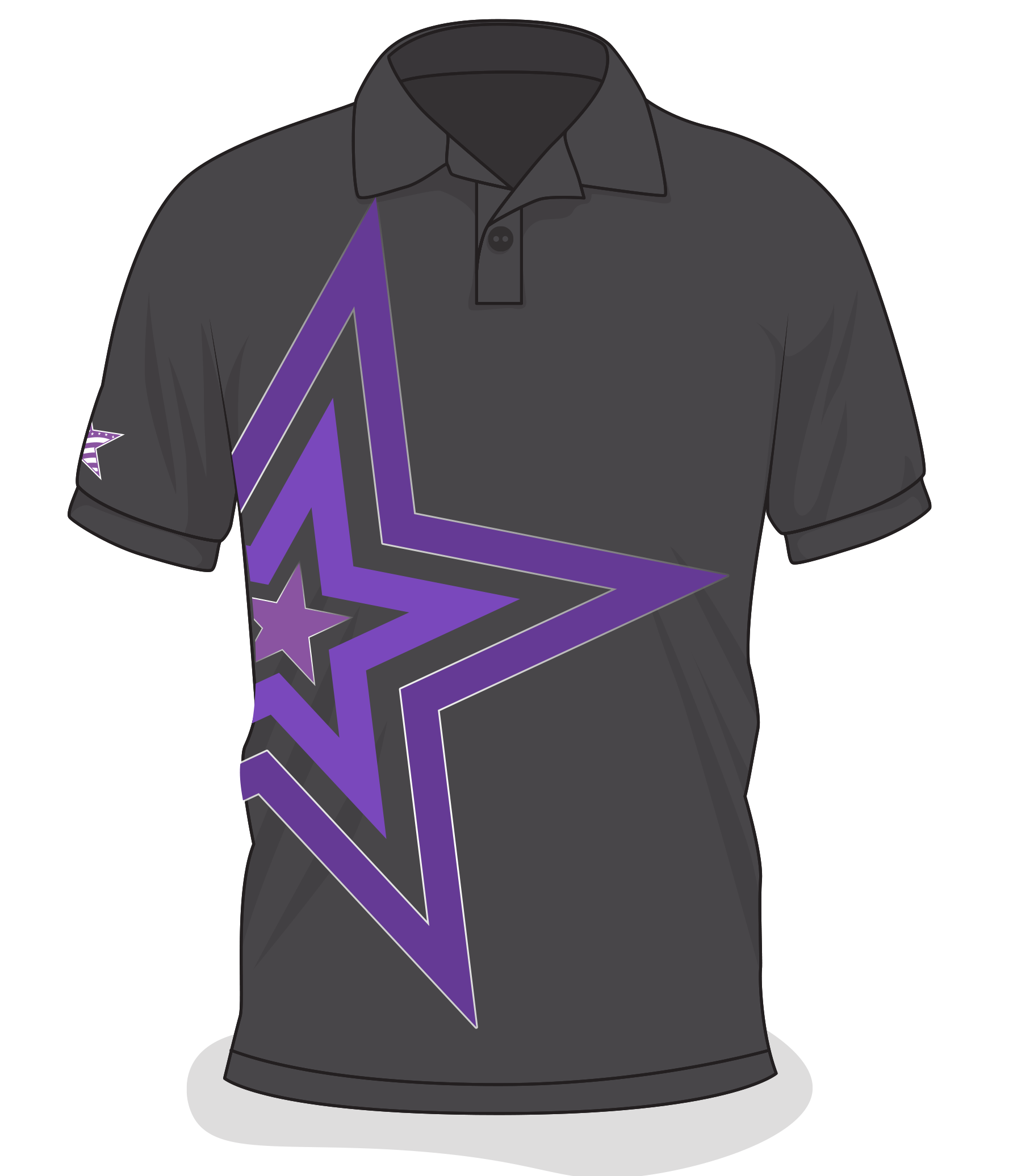 Purple Up- dark grey polo is backordered and will ship as soon as it is back in stock.