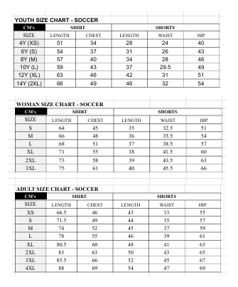 SOCCER SIZE CHART